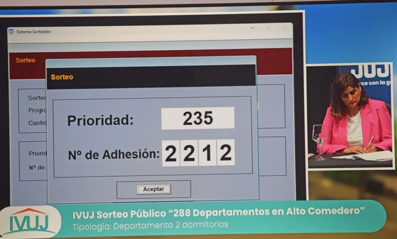 Con transmisión en vivo vía internet, este jueves 4 de diciembre desde las 10h., el IVUJ realizará el Sorteo de Orden de Prelación de la operatoria para demanda libre “Viviendas en San Antonio”, participan 229 postulantes y se podrá ver a través youtube.com/@IVUJVivienda. Las viviendas ya están construidas en la localidad de Los Alisos, B° Ruth Navea.